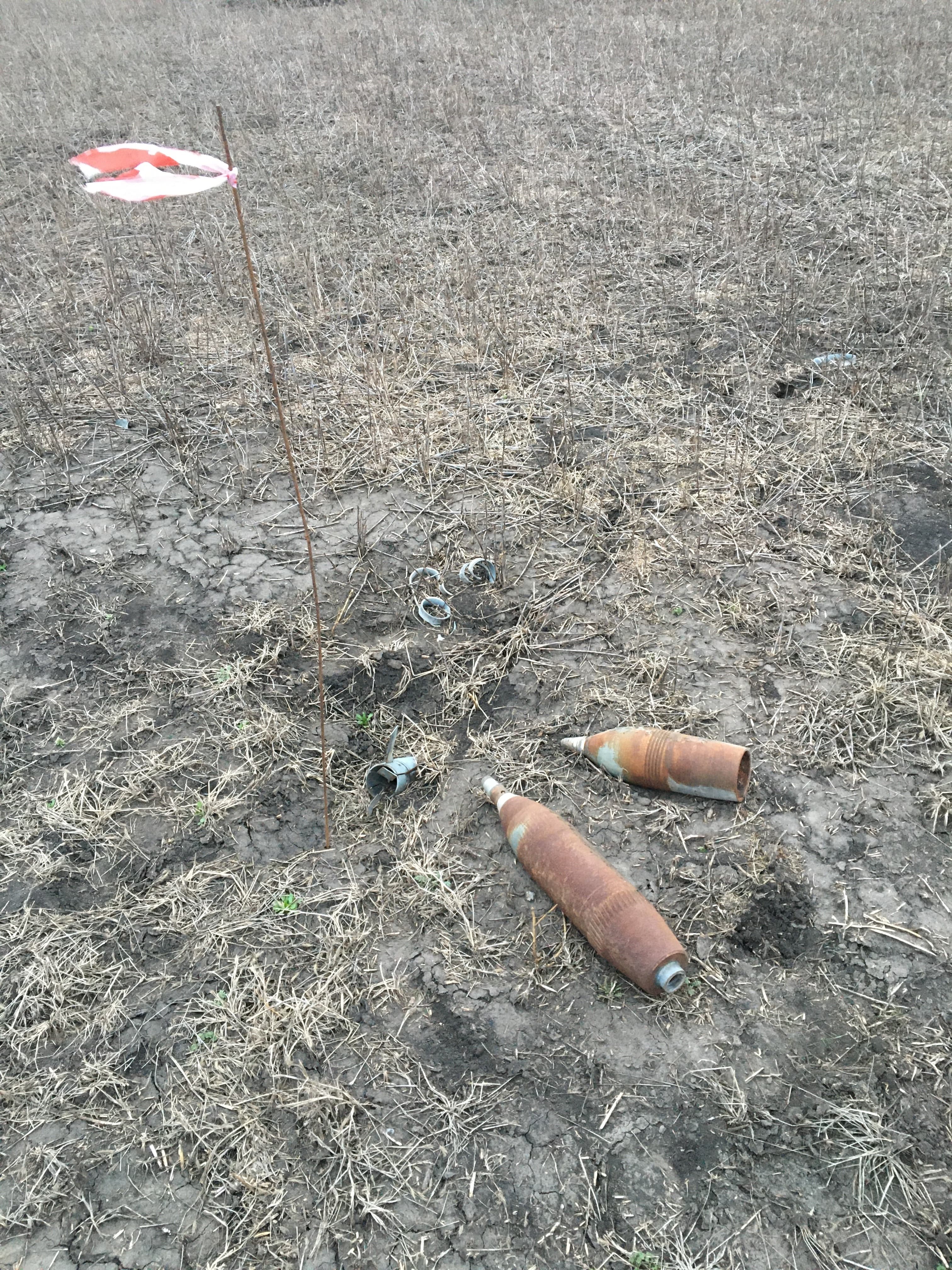 Нет, это, наверное, за дня 3. За дня 3 я их обошел, потому что надо ходить плотно, чтобы лучше видеть, бывает так, что может совсем немного выглядывать. Это все фотографировалось, отправлялась геолокация, все, было пройдено уже поле-два. И уже Саша, муж сестры, отправлял этому саперу заявку. Пишет кто он, название фермерства, краткое описание, эти снаряды, их фотографии, геолокации. На основе этого уже делалась заявка. Но приезжают действительно правда быстро по заявке, тут ничего не скажешь. День-два, приезжают и забирают их. Была беседа с саперами, они попросили мины и неразорванные кассеты ни в коем случае не трогать. Все остальное в принципе безопасно, мин здесь нету, говорят, никто еще в соседних фермерствах ни разу не находил, мы ни разу не находили. В итоге я на дороге на окраине села Партизанское на танковой мине все-таки подорвался.